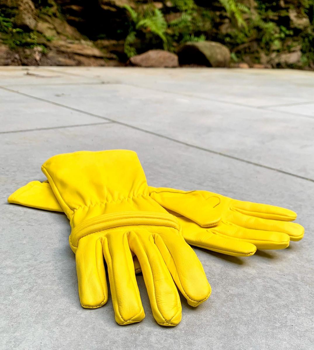 Leather gloves for Power Rangers Cosplay/Long gauntlet/Top grain cowhide/Yellow