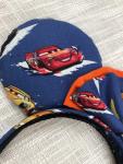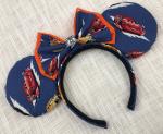 These blue Minnie Mouse ears feature everyone’s favorite race car, Lightening McQueen! An Orange, layered bow with a Card themed button finishes off these ears! This one-inch headband includes braided trim on the inside to ensure comfortability without any slipping! These ears are perfect for a day at CarsLand in Disneyland! **BUTTON IN MIDDLE MAY DEFER FROM PICTURES**