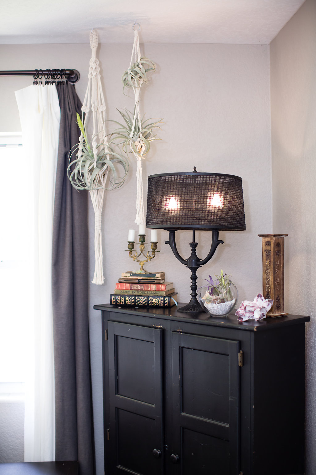 The Macrame Double Plant Hanger is made of cotton and includes two Small Xerographica plants in both hanger sections. This listing is for one macrame hanger only. Length: 35" Plant may come with or without bloom depending on availability. All Tillandsia (air plants) will bloom before propagating. Care card included.