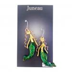 Mermaid earrings created from bronze, copper, brass, and resin enamel with surgical steel ear wires. 2.25-inch length including ear wires. Lacquered to keep shine.