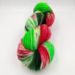 "Merry & Bright" is made in the Kaleidoscope dye method. This has swirls of Ruby, Inchworm, and Forest, on a natural background. Pairs well with Single colors of Natural, Ruby, Inchworm, and Forest.