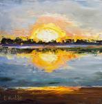 Mission Bay Sunset Palette Knife Oil Painting