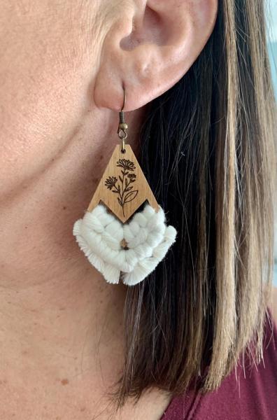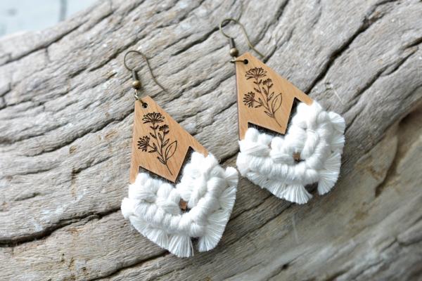 Natural Floral Macrame Wooden Earrings