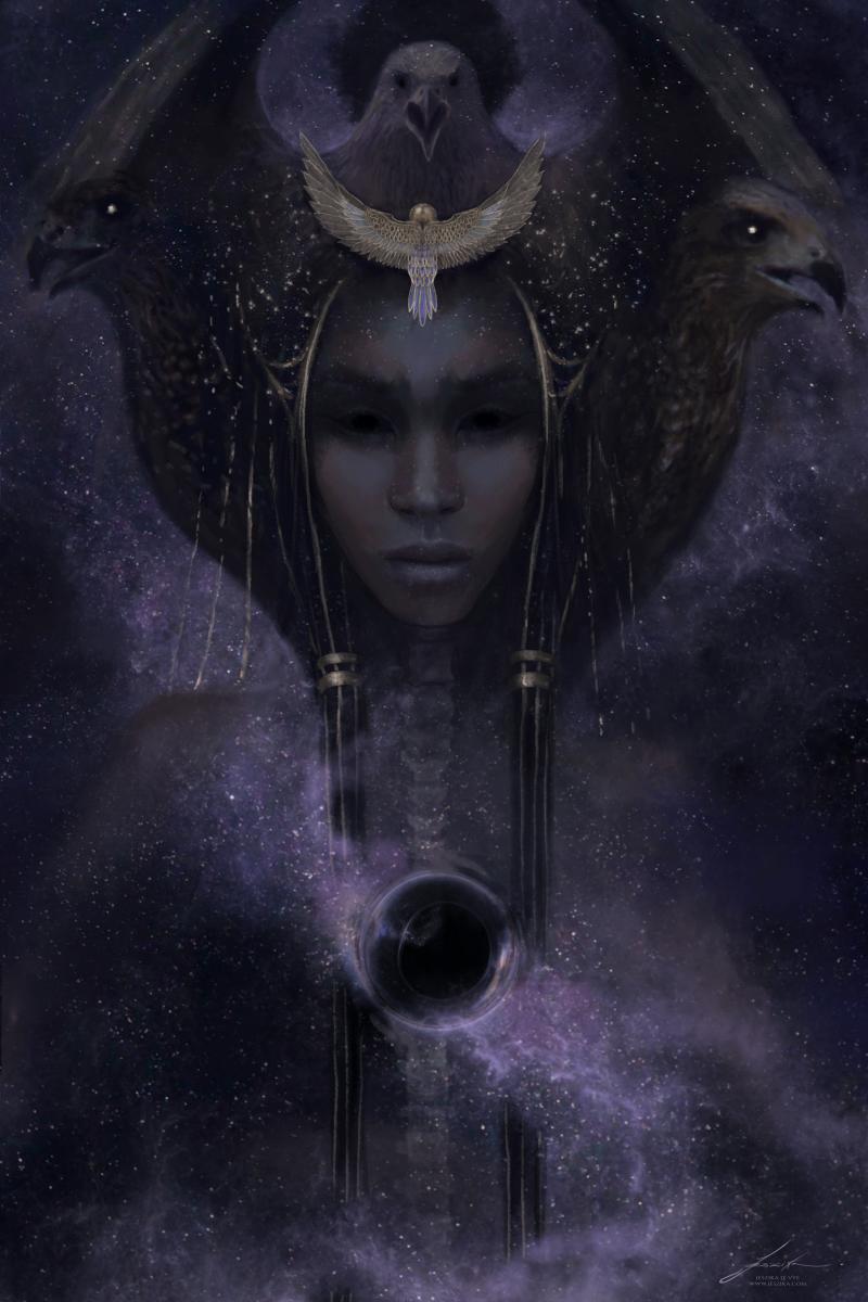 Nephthys was wife to Set, sister to Isis and mother to Anubis. Like her son, Anubis, she was a goddess of darkness and death. But she was not a goddess to be feared, but rather a natural part of the cycle of life and a comfort to the grieving. he walked the boundary between the existing world and the edge of the formless chaos and darkness where the world ended; at home in the wild lands at the edge of the deserts. A mysterious being, she was associated with dreams and intuition, and with childbirth and mummification.