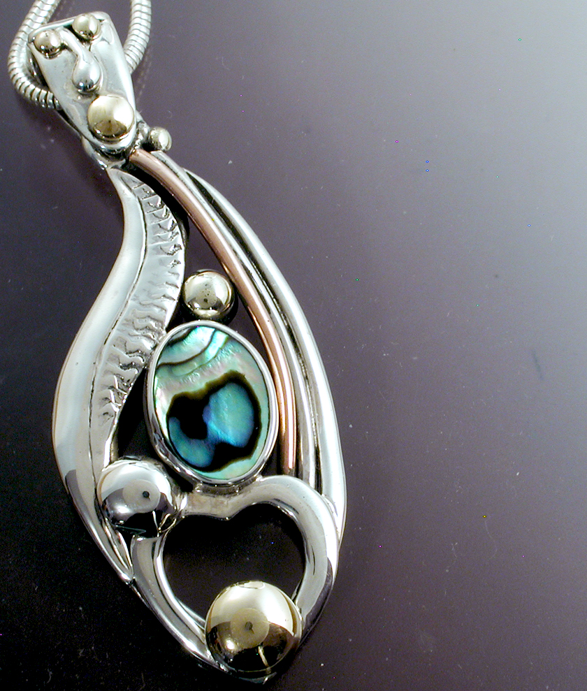 We have made unique jewels for a little over 50 years utilizing a wide range of direct metal working techniques. Most of our work is of mixed metals, silver, copper, gold and brass. We set gems, pearls, shell & abalone pieces in our work. We are always looking for new ways to play with the metal and create new designs.
