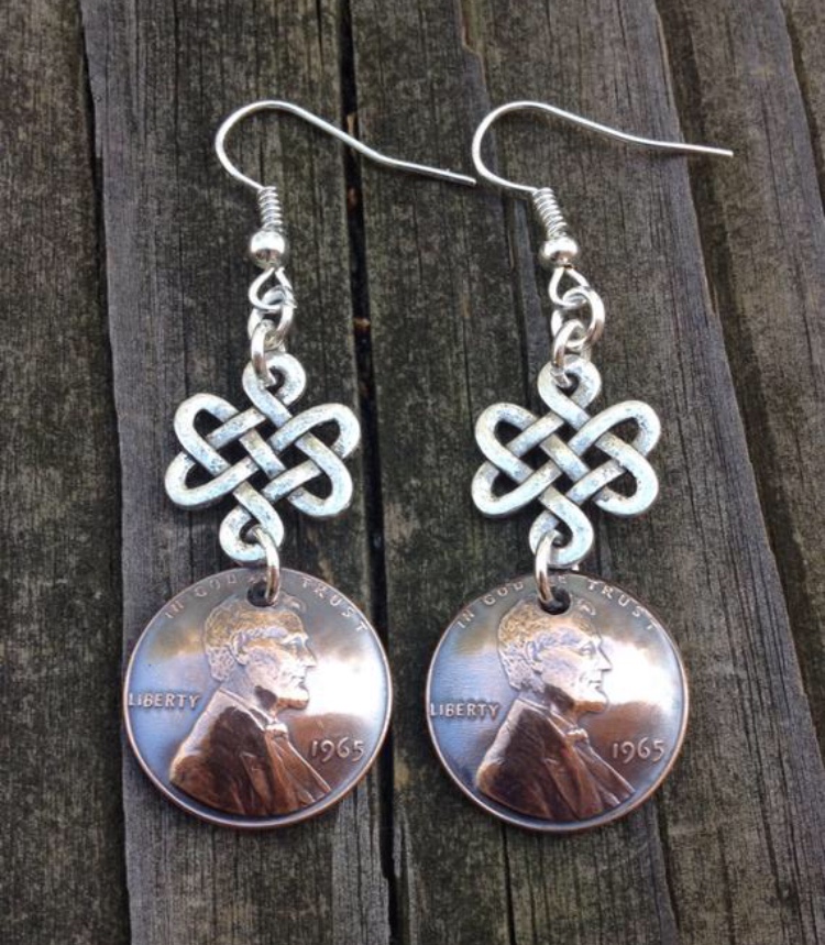This is simple and elegant. The warm burnished penny contrasts so beautifully with the silvery Celtic knots. A perfect gift for any birthday or anniversary. The ear wires and jump rings are made of stainless steel. These penny earrings match the penny bracelets and necklaces that we sell and look amazing worn together.
