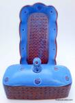 This whimsical covered Butter Dish has a beautiful blue satin glaze with red textured decoration. It is 4 inches tall, 7.5 inches and 3.5 inches wide.