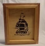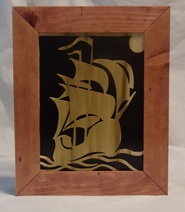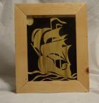 Framed Pirate Ship art work. Several ships available, all hand cut and framed with easy wall hanger attachment. Can be engraved with your name or your favorite pirates ship name