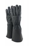 These gloves are made of genuine goat leather, comfortable to wear, soft, supple and durable. The design features long gauntlet without zipper and rectangular shape palm patch with Z shape decorative stitching.