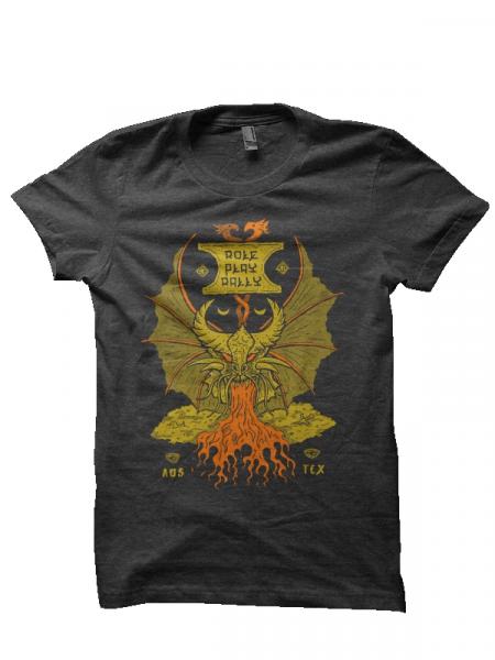 Designed exclusively for Role Play Rally, this shirt is extremely soft and comfortable. A dark gray shirt showing a gold dragon guarding his horde.
