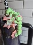 Rose Dragon straw topperThe hole is wide enough to fit over a 10mm straw, dragon will sit in the lid or hang over the side. Can get used with any tumbler with a lid and straw. Example picture shown on a 30oz tumbler. (Tumbler not included)3D printedCustom colors can be ordered.I am an authorized Cinderwing3D Seller