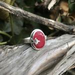 One way to celebrate the holidays is with an artisan made ruby ring. The faceted stone is a vibrant blushing red, tempered only by the touch of a silver fleur de lis.