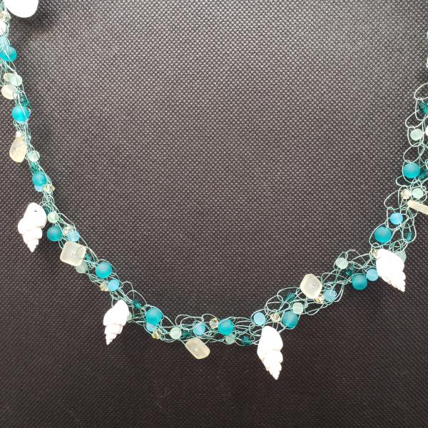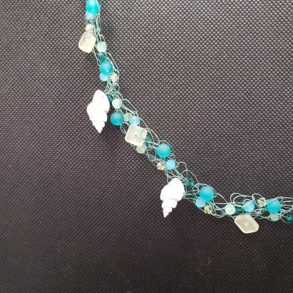 Seafoam Seashell wire crochet necklace