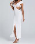 sleeveless side hollow slit midi dress white
