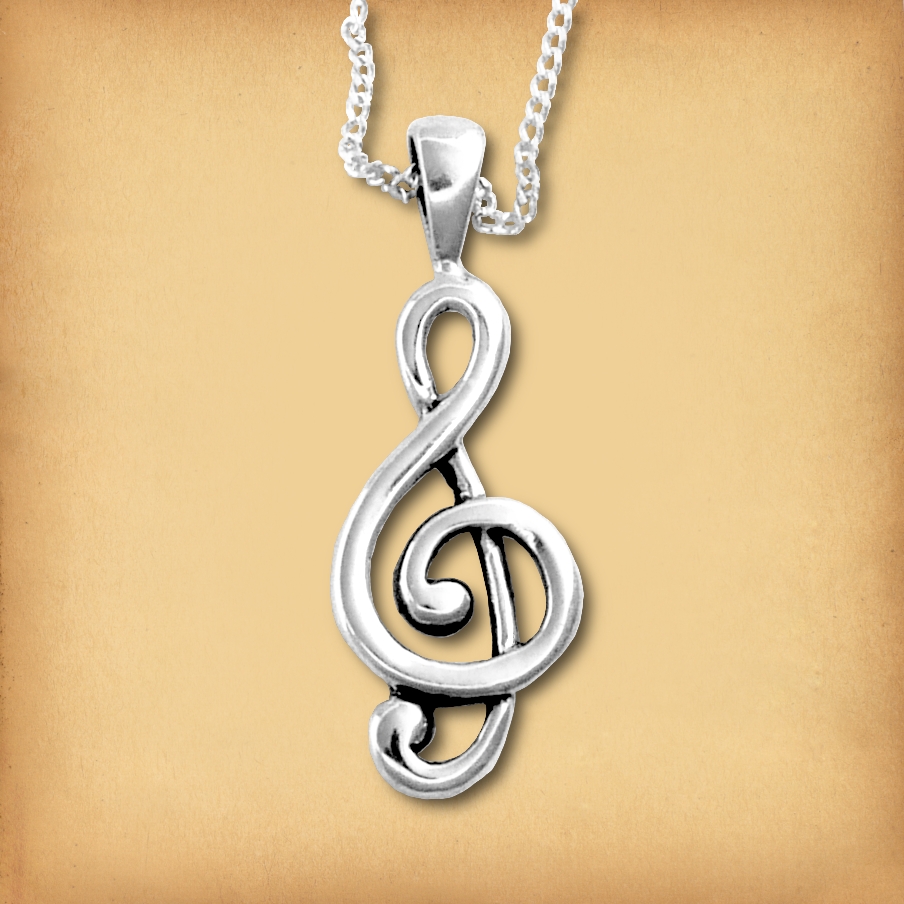 • .925 Sterling silver • Nickel free • Measures 1" tall, including the bail • Includes 18" sterling silver chain This beautifully crafted treble clef symbol is a perfect piece for any music lover or musician. It's a wonderful reminder to always keep a song in your heart as you go from day to day. What about it... does this lovely Silver Music Pendant strike a chord with you? That's not really the symbol for music, is it? No, you are correct. This is a musical symbol, but technically, it does not represent music as a whole. This is the symbol for a treble clef, or G clef, and while it does have a specific meaning in musical notation, the symbol is so widely used, and universally recognized, that it's no wonder you often see it used to represent the entire field of music. Would this be a good gift for my sweetheart? Absolutely! What better way to say "You are the music of my life, the melody of my soul, the beat of my heart."