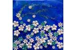 This is one painting that says "Please touch!" Soft paper petals and smooth metallic stars create a tactile experience.