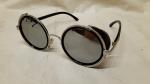 Steampunk style round sunglasses with UV protection and metal frames in various colors. Intended primarily as a Steampunk Costume accessory but can be used as standard sunglasses as well.