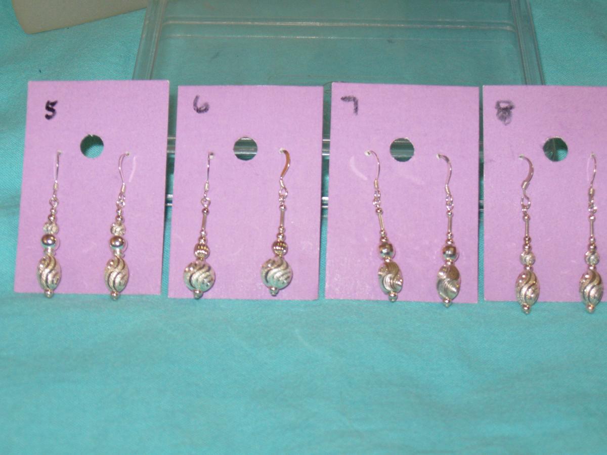 this is your choice of 1 of the 4 pair of sterling silver bead earrings. the beads are beautiful and very light. they are about 1 1/2 to 1 3/4 inches long including the wires. you can use sterling silver cleaner on them if they tarnish.