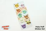 Poke Puffs: Individual stickers roughly 1.5" x 1.5". 9 different puffs in set.