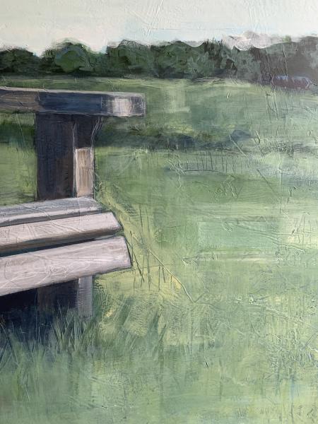"My paintings serve as windows to memories. They document Texas roadside locations that stop me in my tracks and compel me to turn around for another look. When I paint these locations I employ a multi-layered, sculptural approach as I seek answers to the questions the location asked when I visited in person. I build up and scrape away layers and elements until the painting achieves clarity. The unrooted yet soothing feeling of being "in between" is an important component to my work. I carry a sketchbook and camera with me at all times, so when I stumble across a site I can produce sketches and photographs to serve as references when I sit down in my studio to paint."