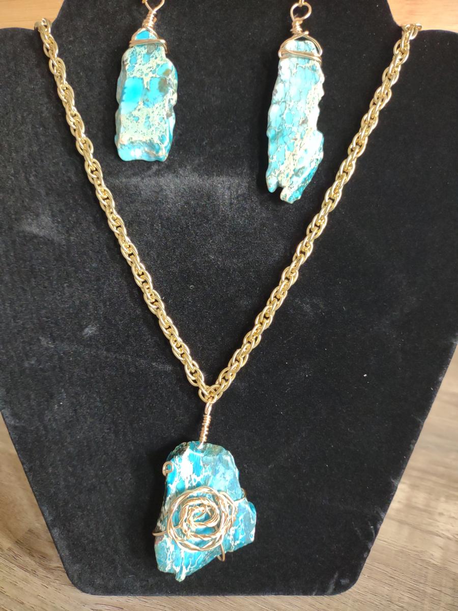 Please confirm your choice below and add Teal stone necklace set to the cart.