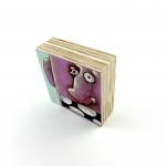 Original 4x4 mixed media painting on 1.5" thick wood block. Painting has a protective clear coating and a keyhole slot on the back for hanging. Painting is ready to hang right out of the box