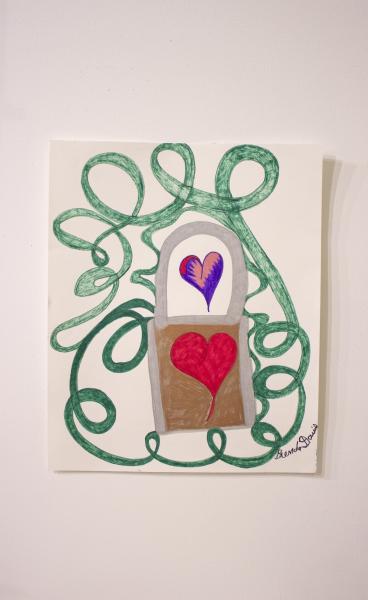 This ocean-inspired piece is marker on paper. "We don't have to look like each other to be family."-Brenda Davis