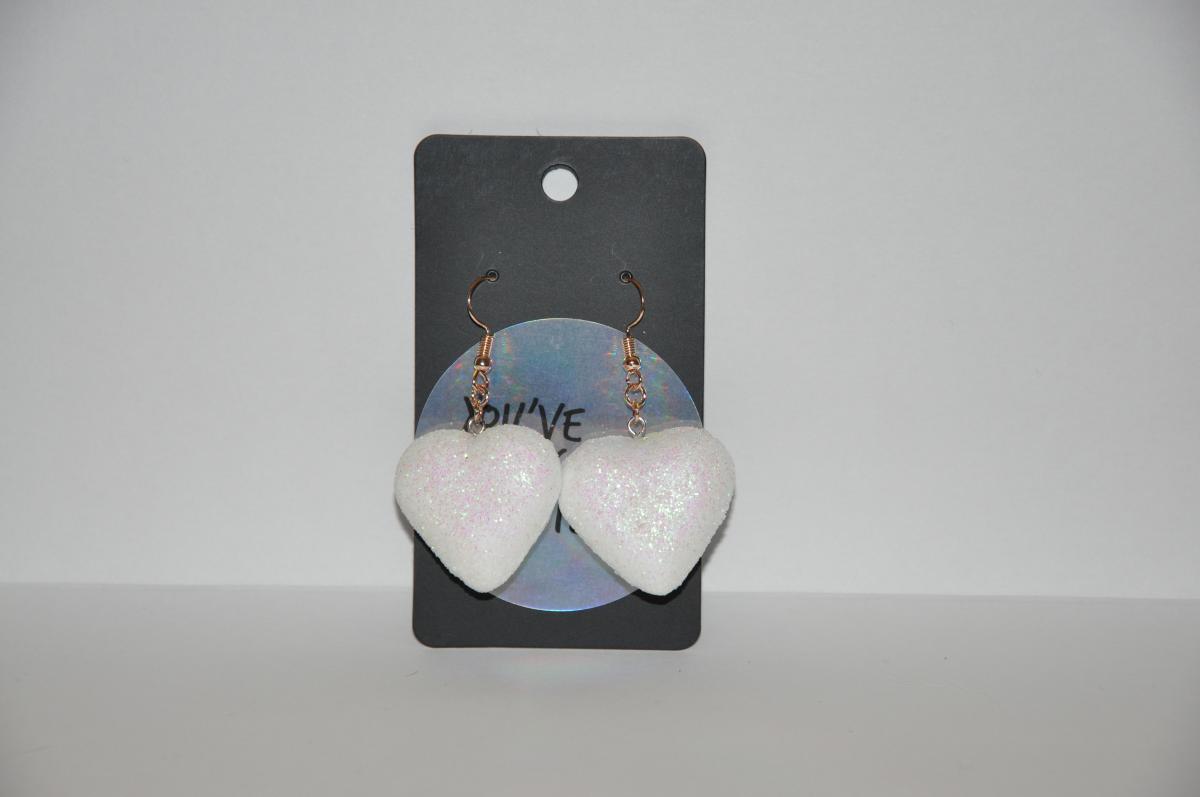 Please confirm your choice below and add White Iridescent Heart Earrings to the cart.