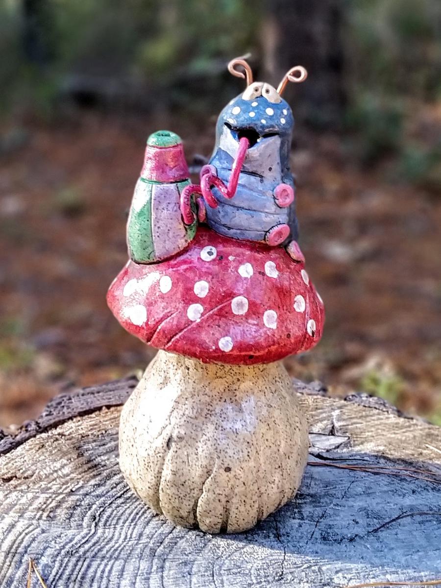 This piece is inspired by the Caterpillar from Alice in Wonderland Absolem. Did you know his name means handsome and convincing? He's such a joy to create makes me chuckle everytime I'm done painting him.