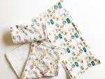 Our 3 pack burp cloths are made with flannel and terry cloth backing. The flannel gets softer with each wash and the terry cloth backing makes these burp cloths very absorbent for those big or frequent spit ups.