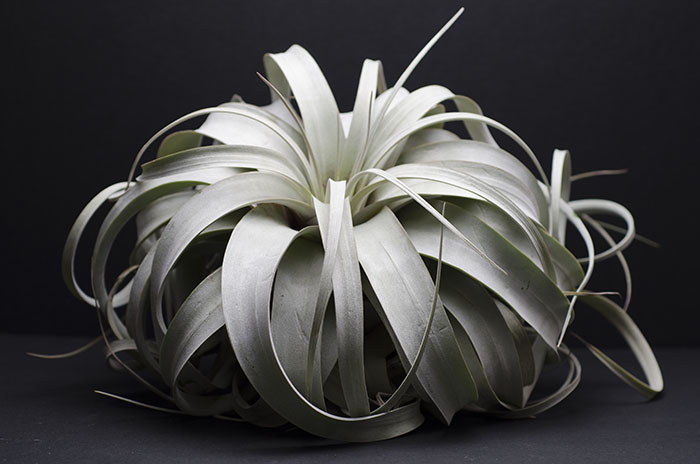 Known for its silvery green, moderately fuzzy foliage, and leaves that curl. Xerographica can grown very large for air plants and produce a tall spike bloom that ranges in color from yellow to orange.