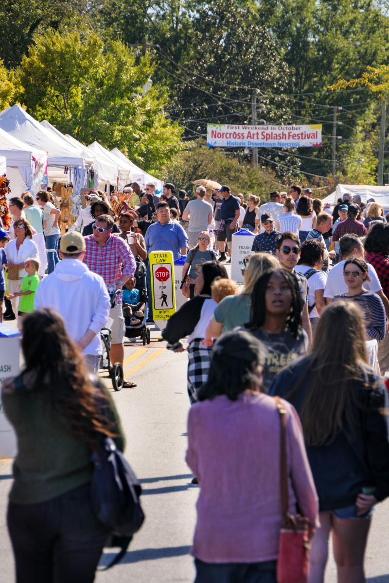Norcross Art Splash celebrates its twenty-third year on October 3 & 4, 2026.You are invited to apply as an artist to this much anticipated fall event in Thrasher Park in historic downtown Norcross, Georgia. Load in is on Friday or Saturday.• APPLICATION PROCESS: When you apply, you'll be prompted to create your own account with your basic information. This will allow you to update your personal information and also allow you to see the status of your application. Your preferred method of payment (credit/debit card or ACH bank transfer) will be necessary when you register but will not be charged until you are approved. Acceptable categories are candles, clay, clothing/wearables, culinary arts (not food vending), fiber, folk art, glass, jewelry, leather, living plants, metal, mixed media, musical instruments, paintings, pet products, photography, print making, sculpture, soaps-lotions-balms and wood. Permanent jewelry or crocheted animals are not allowed. You'll be required to submit recent photos with this application, which may be used for promotional purposes. Applications without a booth photo will not be considered.• GEORGIA GROWN MEMBERS: Georgia Grown is an incredible partner with Splash Festivals, and we are truly grateful for their friendship and commitment to our events. The program has been so successful between our organizations that in our new agreement with them, they have issued a cap on the number of their members who can receive their very generous Georgia Grown discount. Priority is given to agricultural-related items. Georgia Grown will still accept artists who recycle, repurpose or reuse products to “reinvent” their own creations, however we will be more limited on who we can approve. Georgia Grown is also working on a better way to screen new (and past) members, to make sure that exhibitors are a good fit for their programs and benefits (which are great)! When the artist jury meets, they will be subject to this cap.