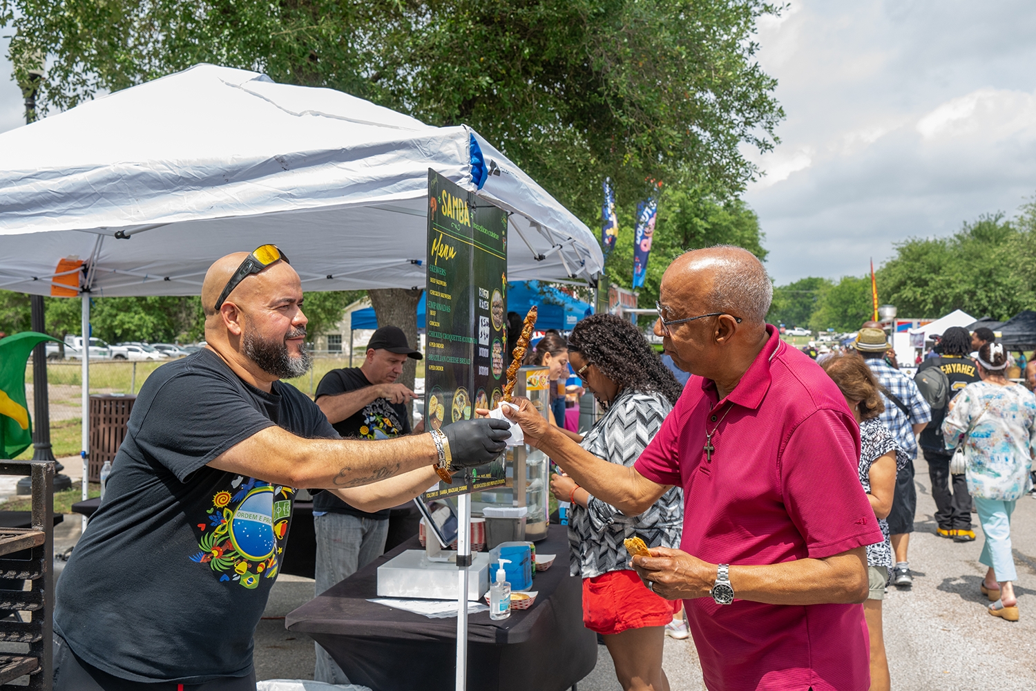 As part of the program, participating vendors will offer complimentary bite-sized samples of their cuisine to passport holders. A tent is required for all vendors serving their small bites, allowing food trucks and trailers to remain available for attendees placing menu orders.