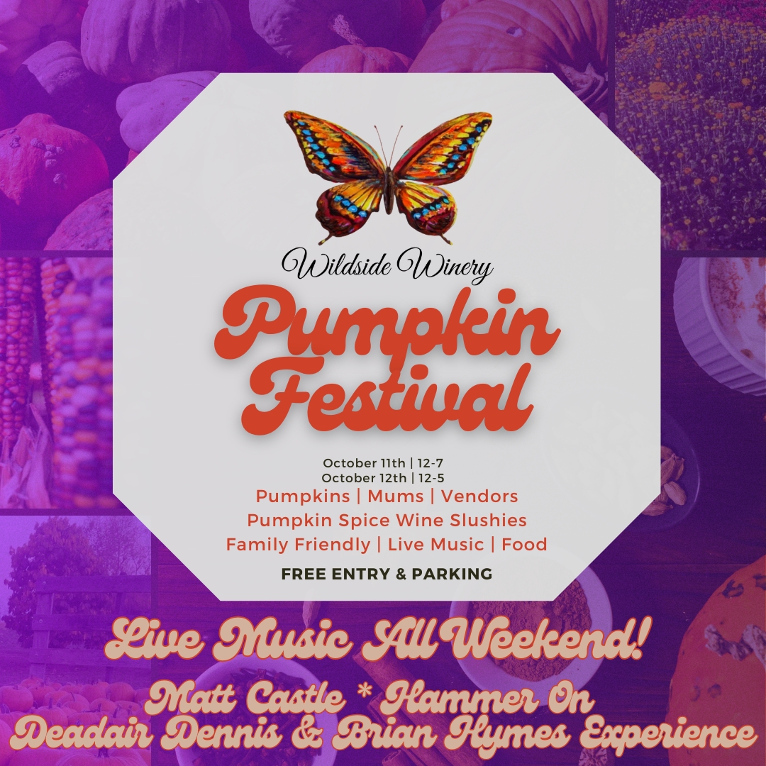 Get ready for a weekend full of fall fun at Wildside Winery’s Pumpkin Festival on October 11th from 12-7 PM and October 12th from 12-5 PM! Enjoy all the best that autumn has to offer right here in our vineyard.