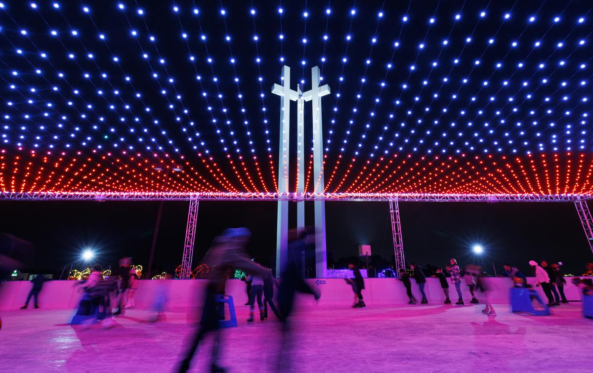 The 3Crosses Christmas Village is a family-friendly holiday event featuring ice skating, lights, music, and local vendors.