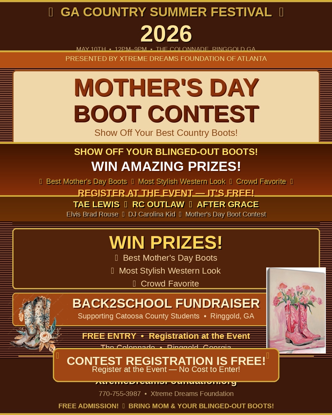 #GACountryFestival #SummerVibes #FamilyFun #CountryBootsContest #LiveMusic #FoodTrucks #MothersDayRaffle #RinggoldGA #CommunityEvent #FreeAdmission #XtremeDreamsEvents