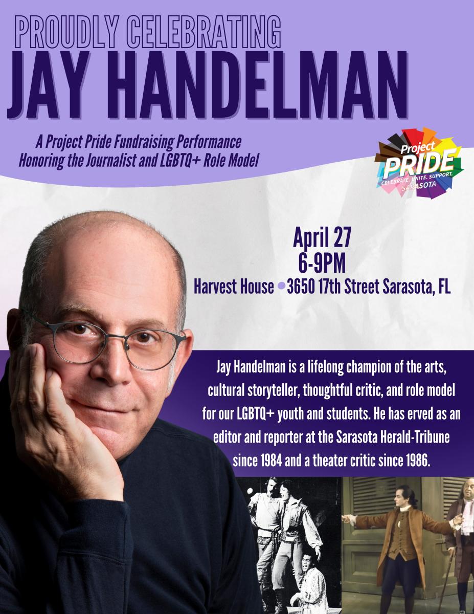 This special evening honors the remarkable 41 year legacy of Jay Handelman—a lifelong champion of the arts, cultural storytelling, and thoughtful criticism and role model for our LGBTQ+ youth and students—while supporting Project Pride’s mission to create inclusive, affirming spaces for the LGBTQ+ community. Sponsorship is an opportunity to invest in both legacy and future impact, celebrating the voices that shape our cultural landscape while ensuring Project Pride can continue expanding programs, visibility, and community support across the Sarasota–Manatee region.