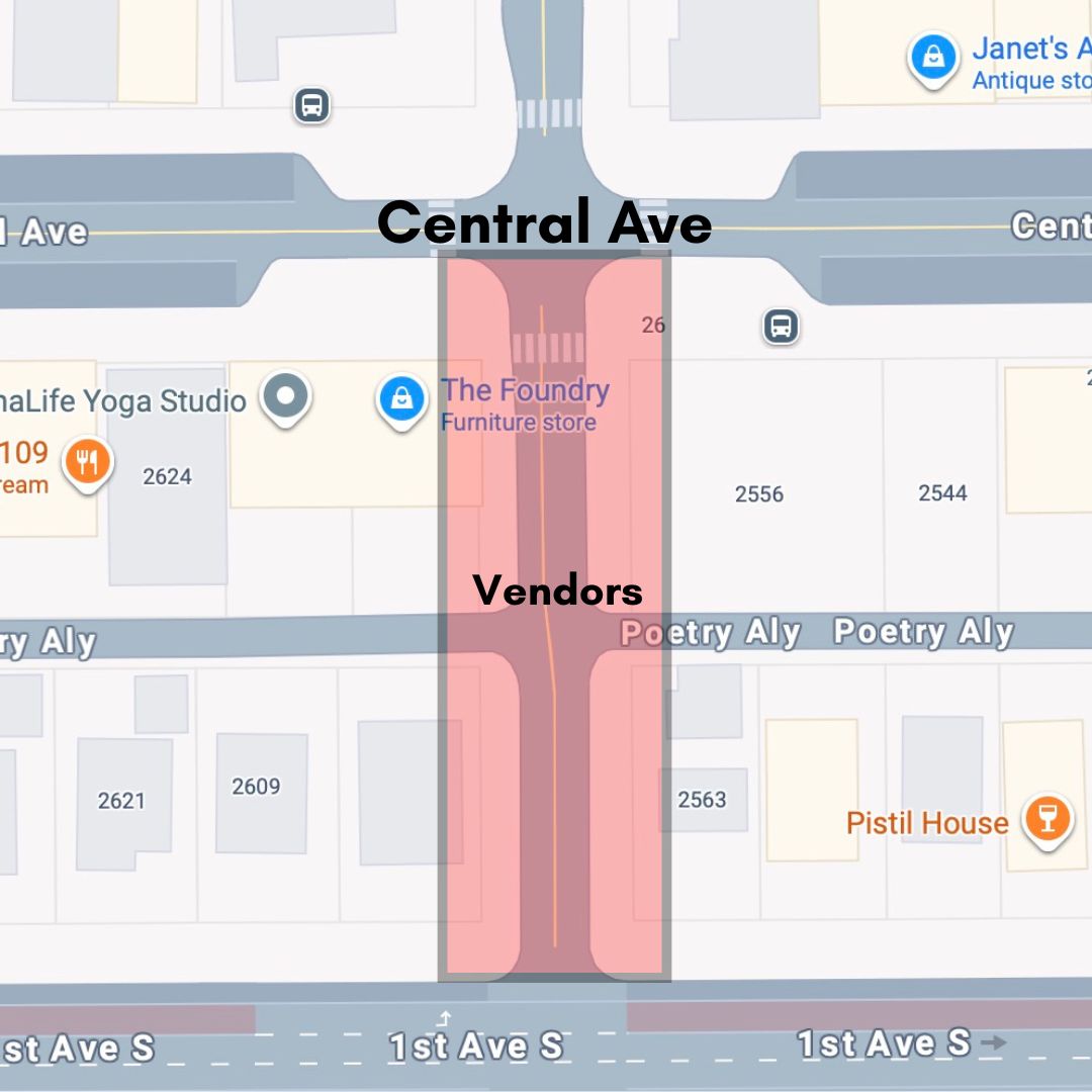 Spaces will be 10x10 and located on 26th St S between Central Ave and 1st Ave S.