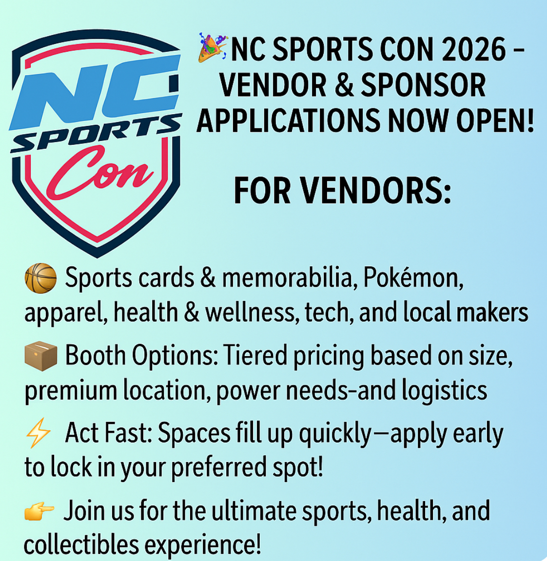 This application is for on-stage demonstrations and presentations during NC SportsCon 2026.