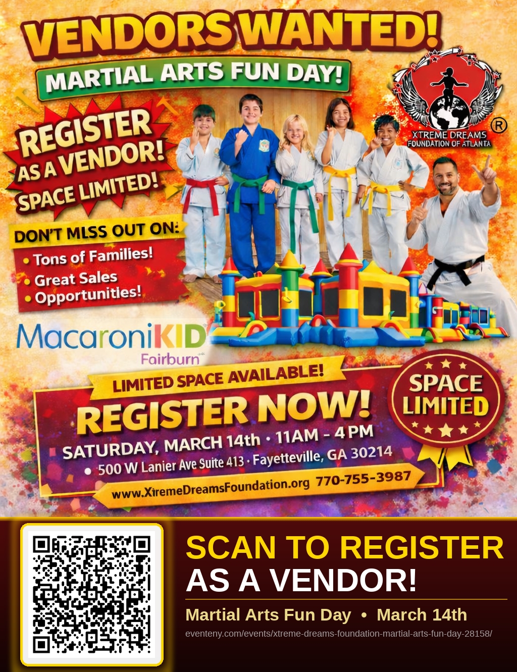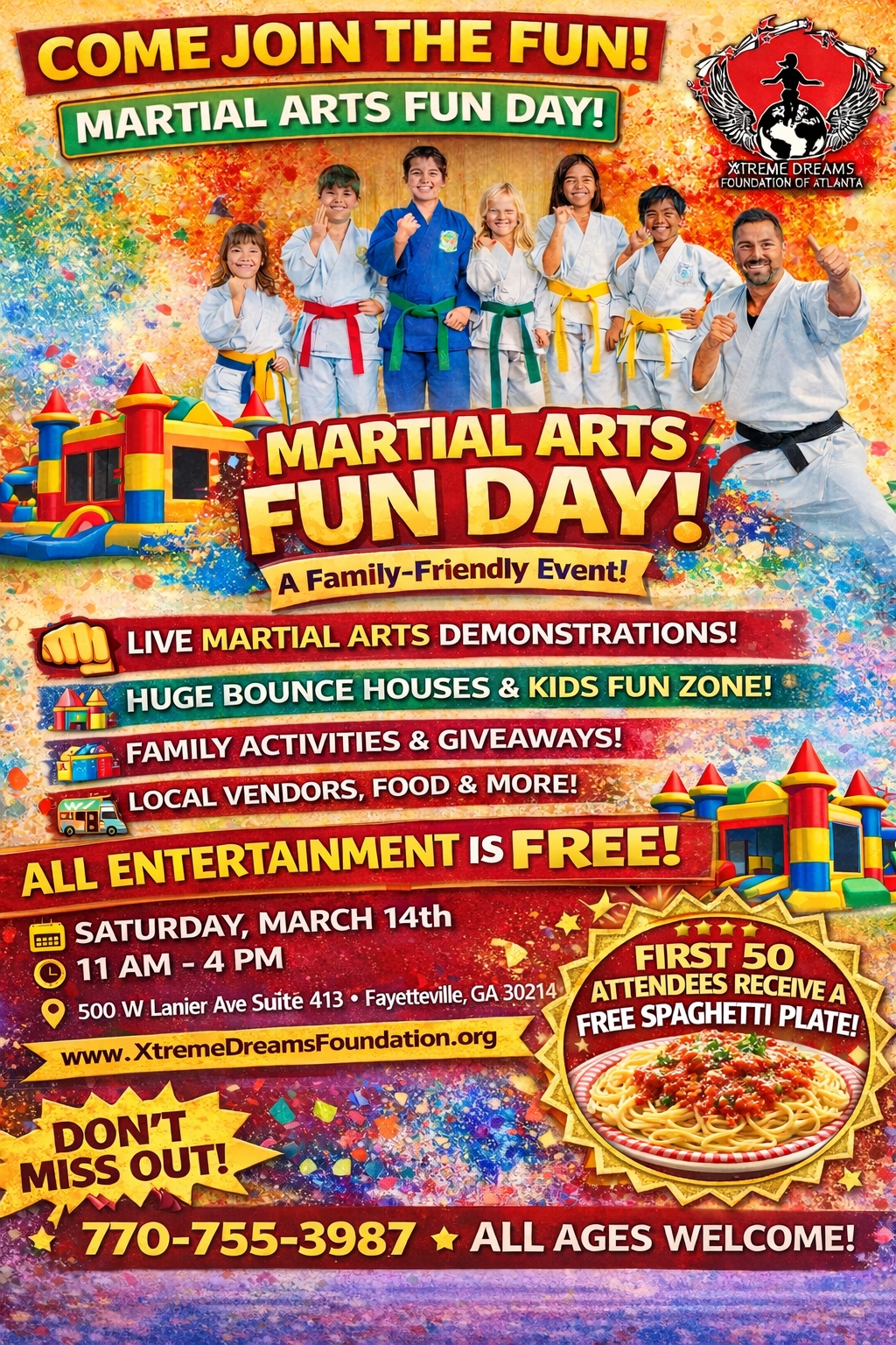 Come be a part of the Xtreme Dreams Foundation Martial Arts Fun Day—a day packed with excitement, great food, and community spirit. See you there! 🎈🥳🎊